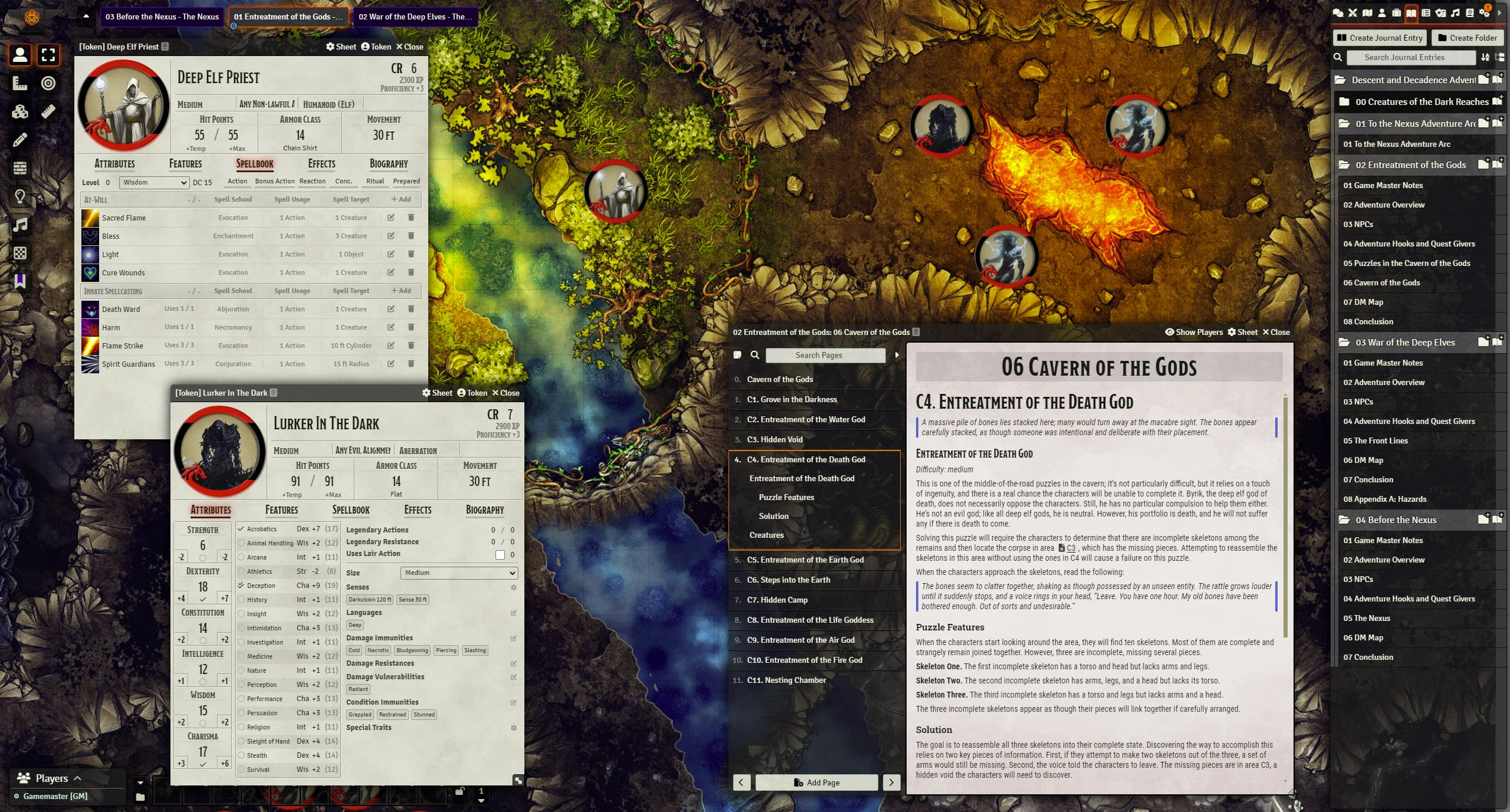 - Scenes pre-configured with walls, lights, and tokens already placed for game master convenience when running the adventures.