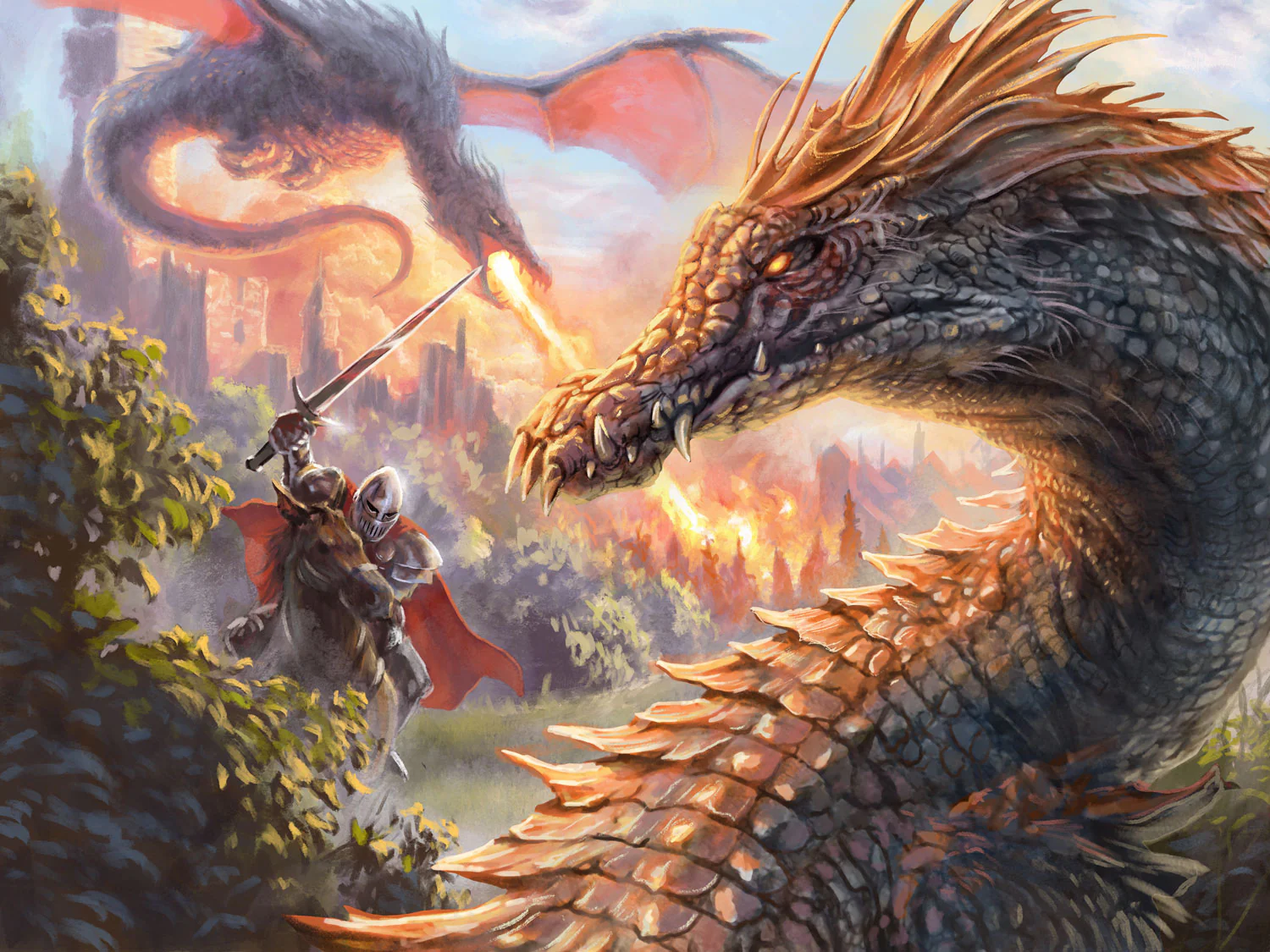 - Artwork depicting four genres of play: fantasy, horror, sci-fi, and steampunk.