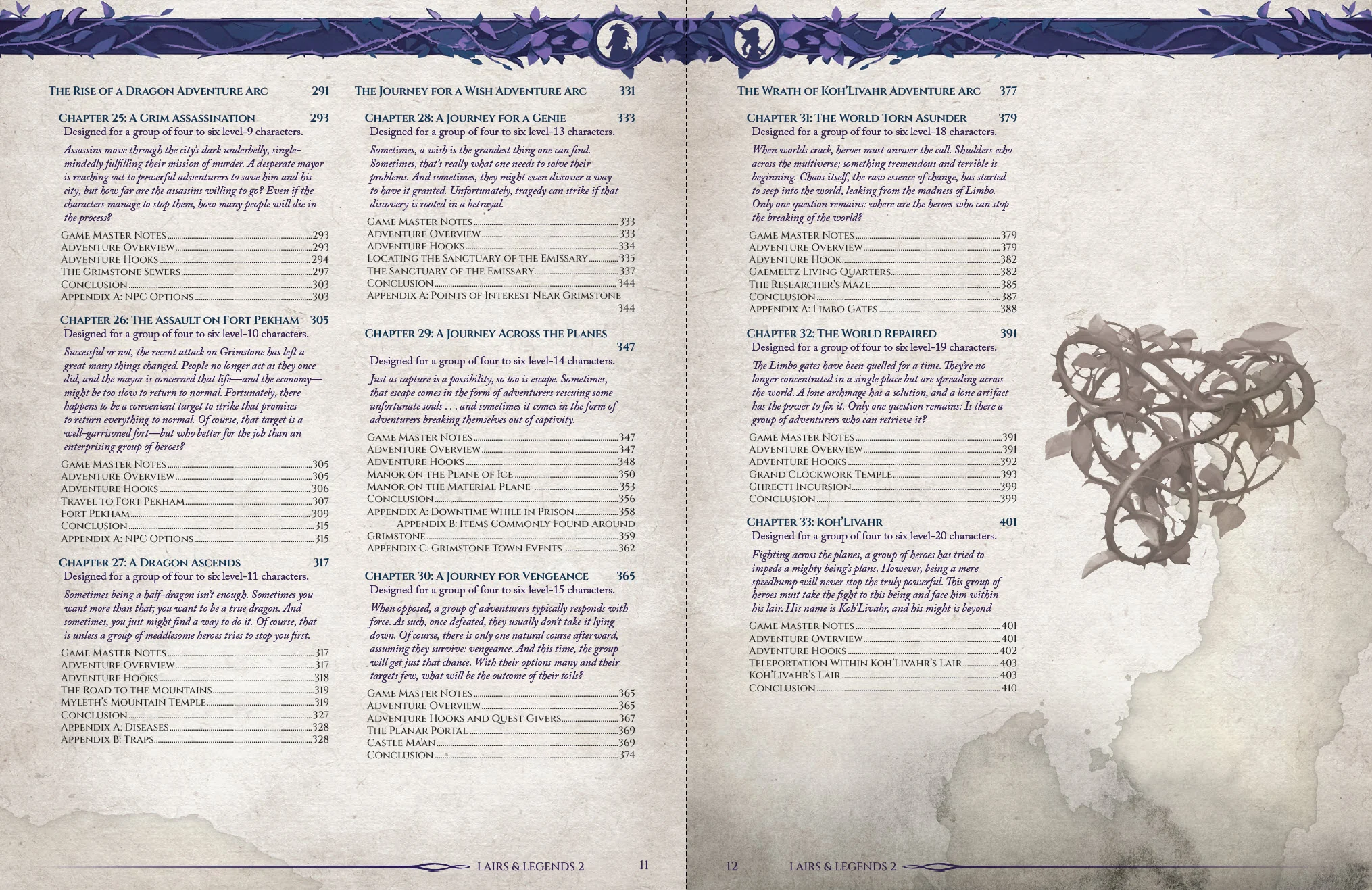- 33 adventures spanning levels 1 to 20 and designed for groups of 4 to 6 players