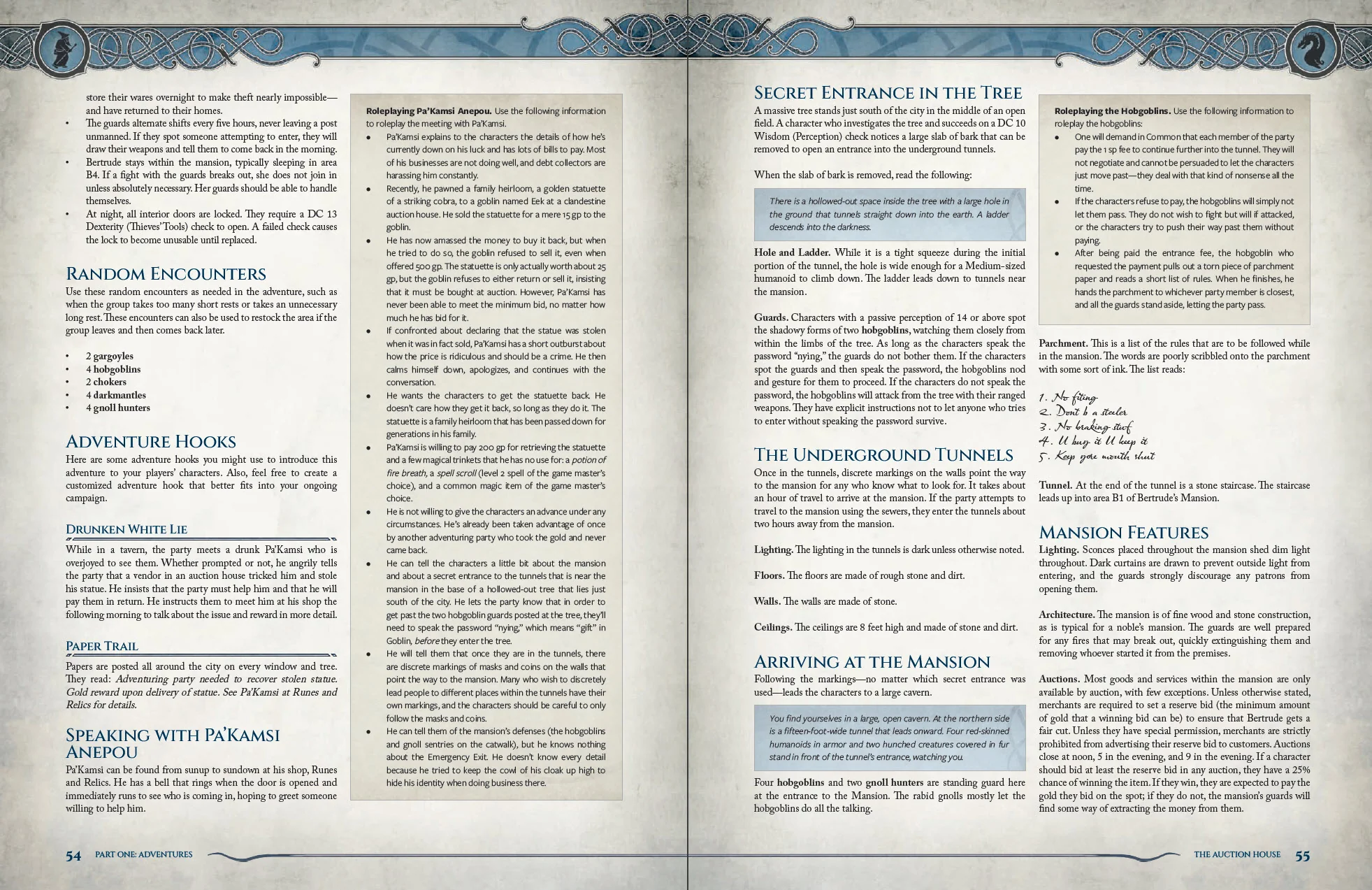 Every adventure is expertly designed for quick prep and easy reference at the game table, and contains the following: