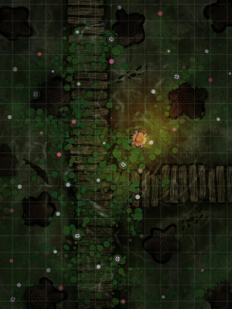 This swamp-themed map pack contains 10 high-quality maps designed for use on VTTs such as Roll20 and Fantasy Grounds.
